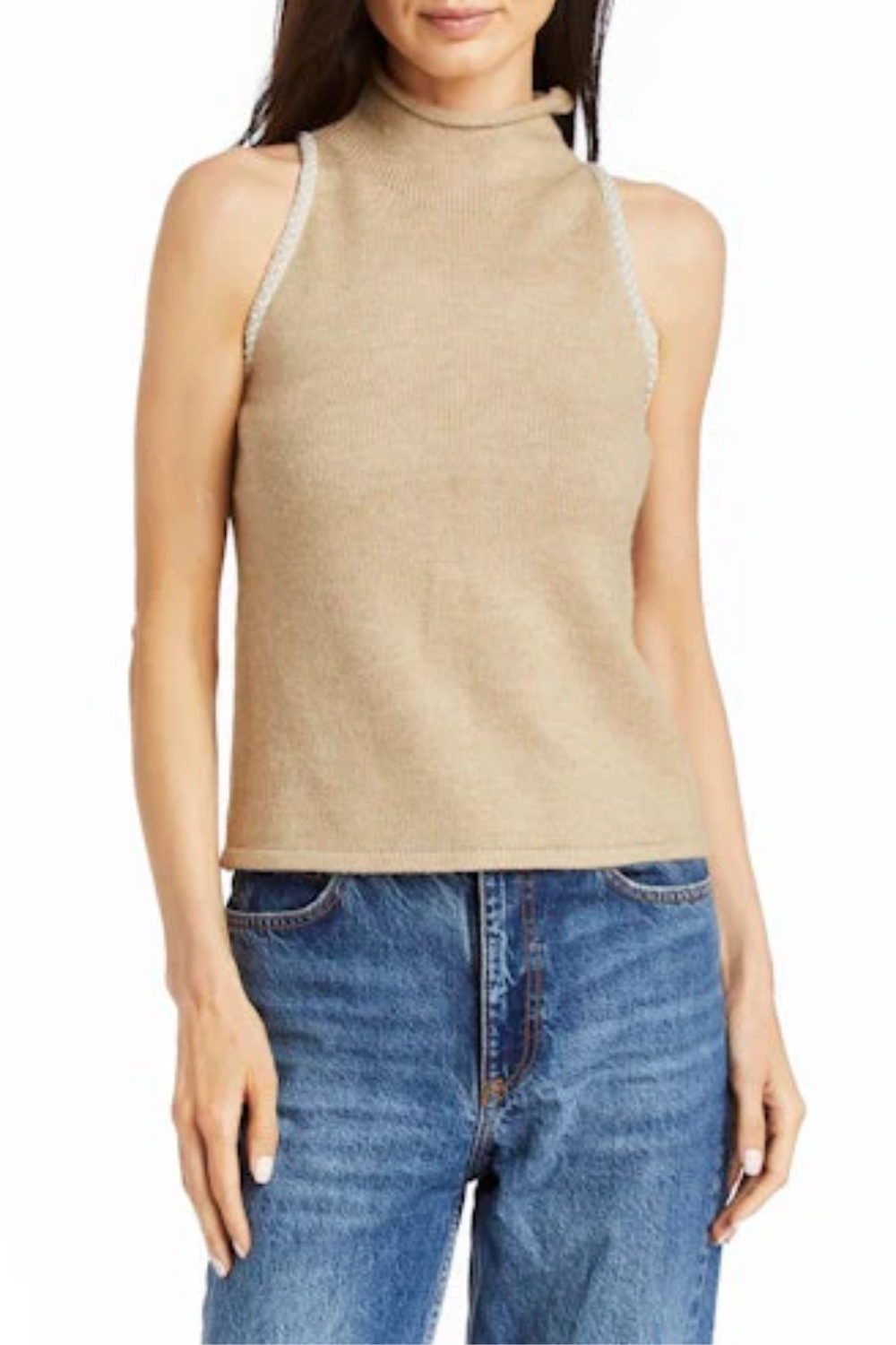 mock neck sleeveless knit featuring jeweled embellished detailing