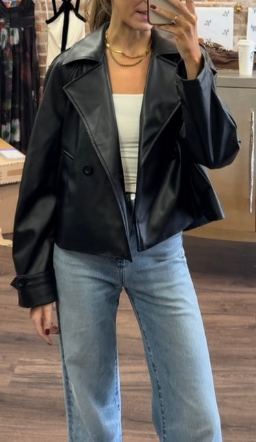 Vegan faux leather trenched cropped jacket