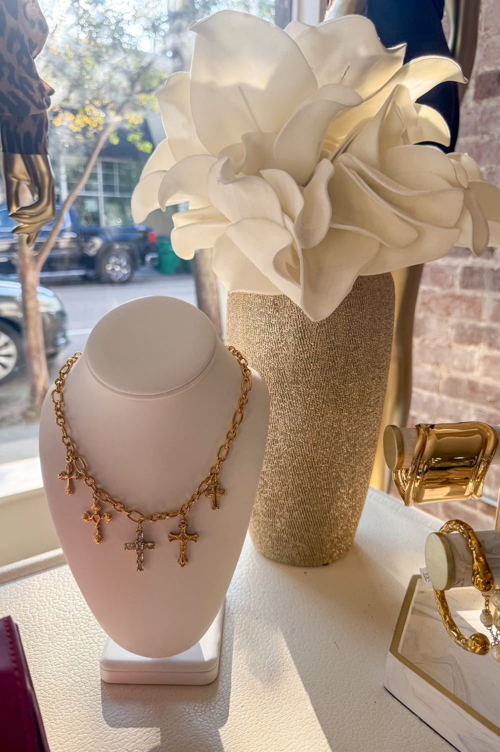 gold plated cross charm necklace