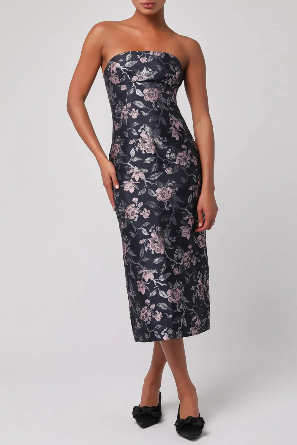 strapless jacquard floral print midi