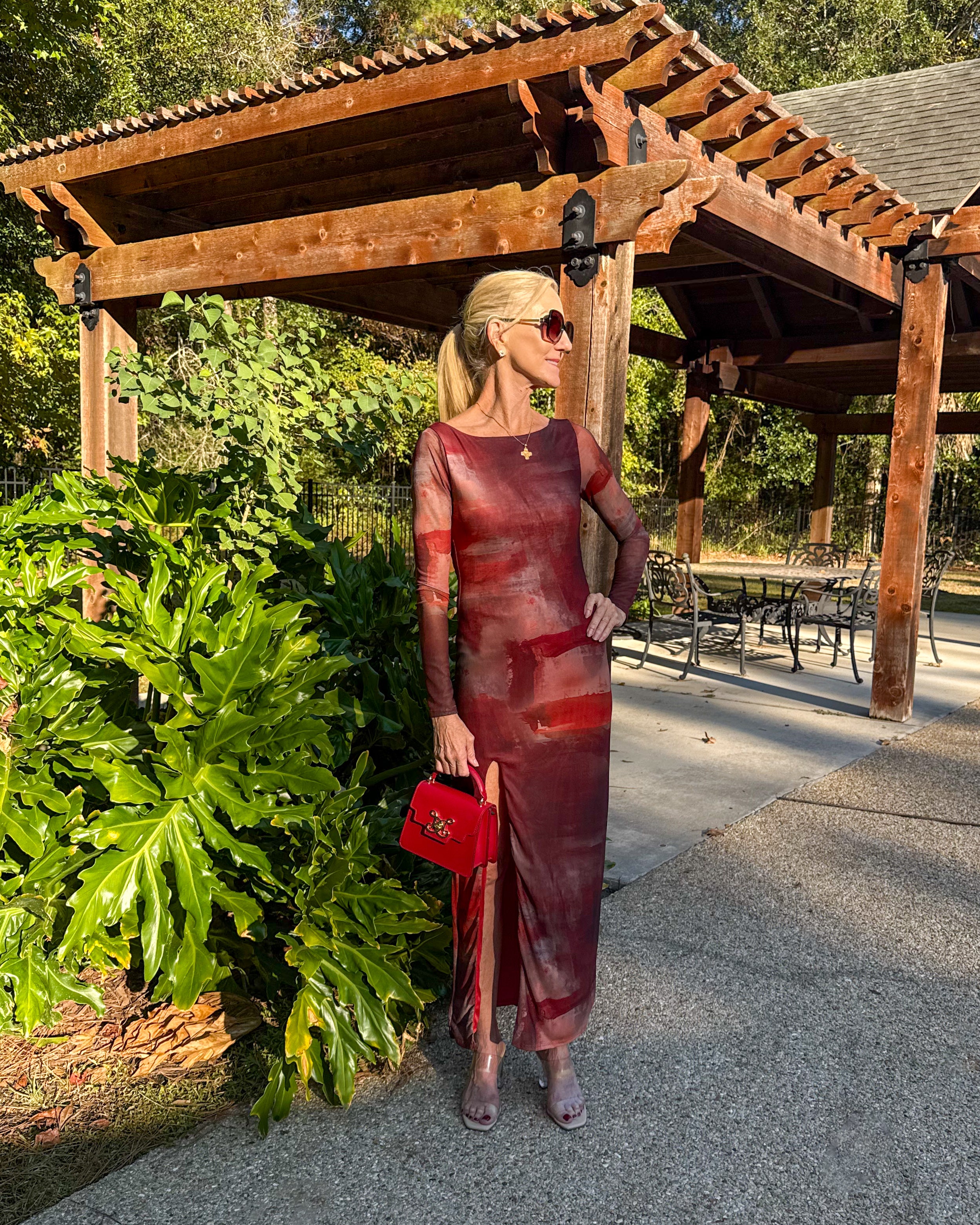 Long-Sleeve Mesh Midi