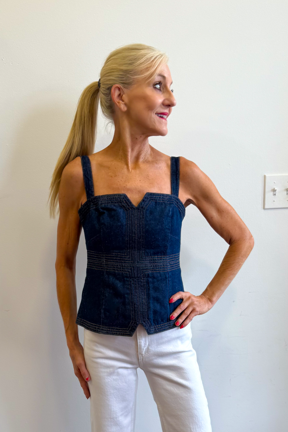 Denim Corset With Topstitching