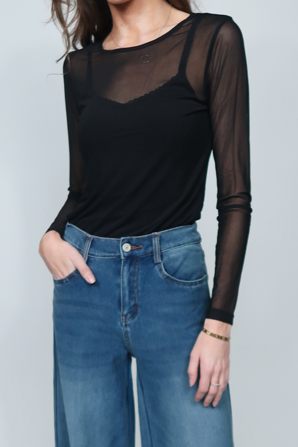 Sandra Diamante Mesh Top