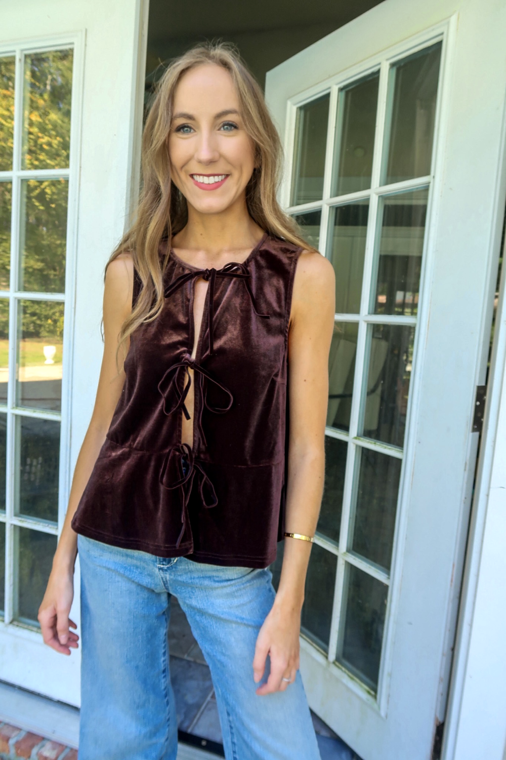 Velvet Tie Front Top